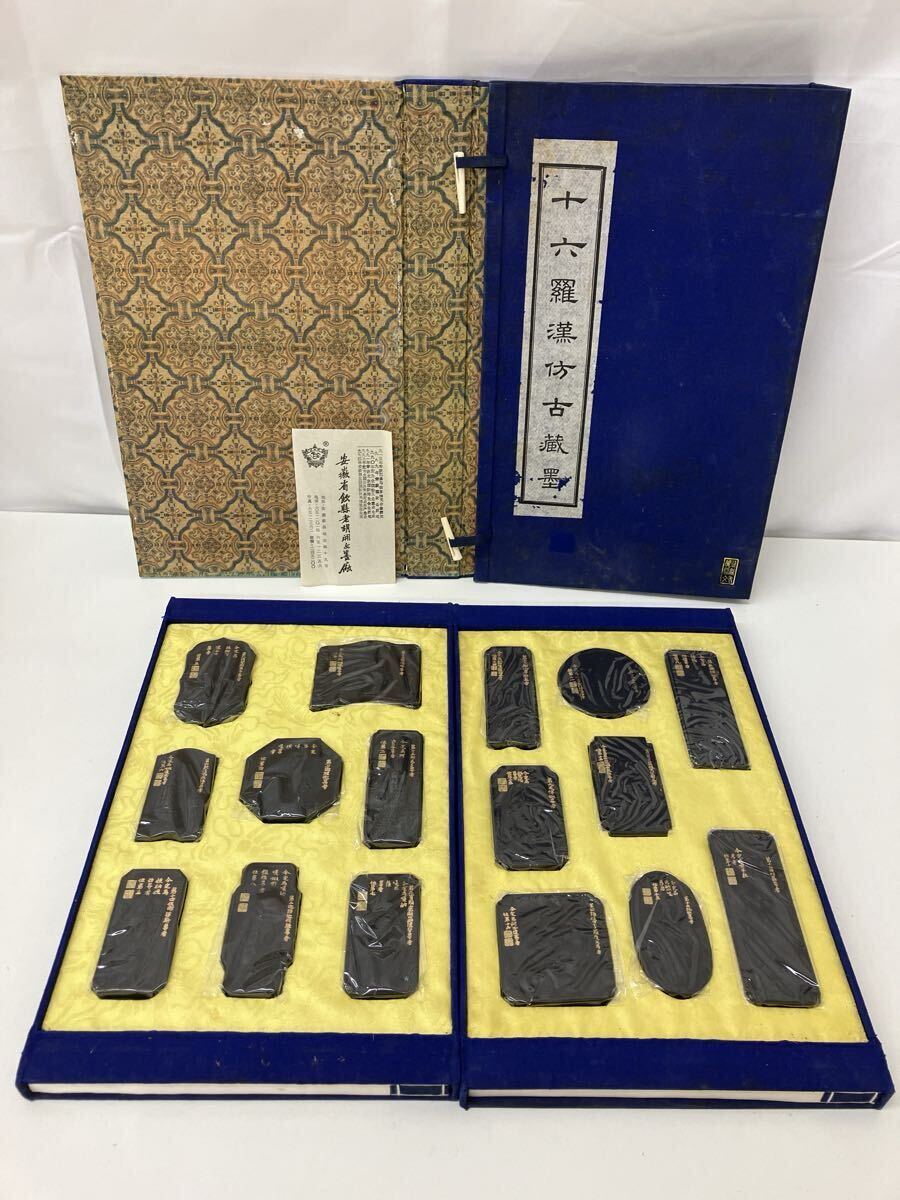 - 【H826-z】中国墨 十六羅漢倣古蔵墨 胡開文 書道具 墨 箱有 16丁組 古墨 書道 書画