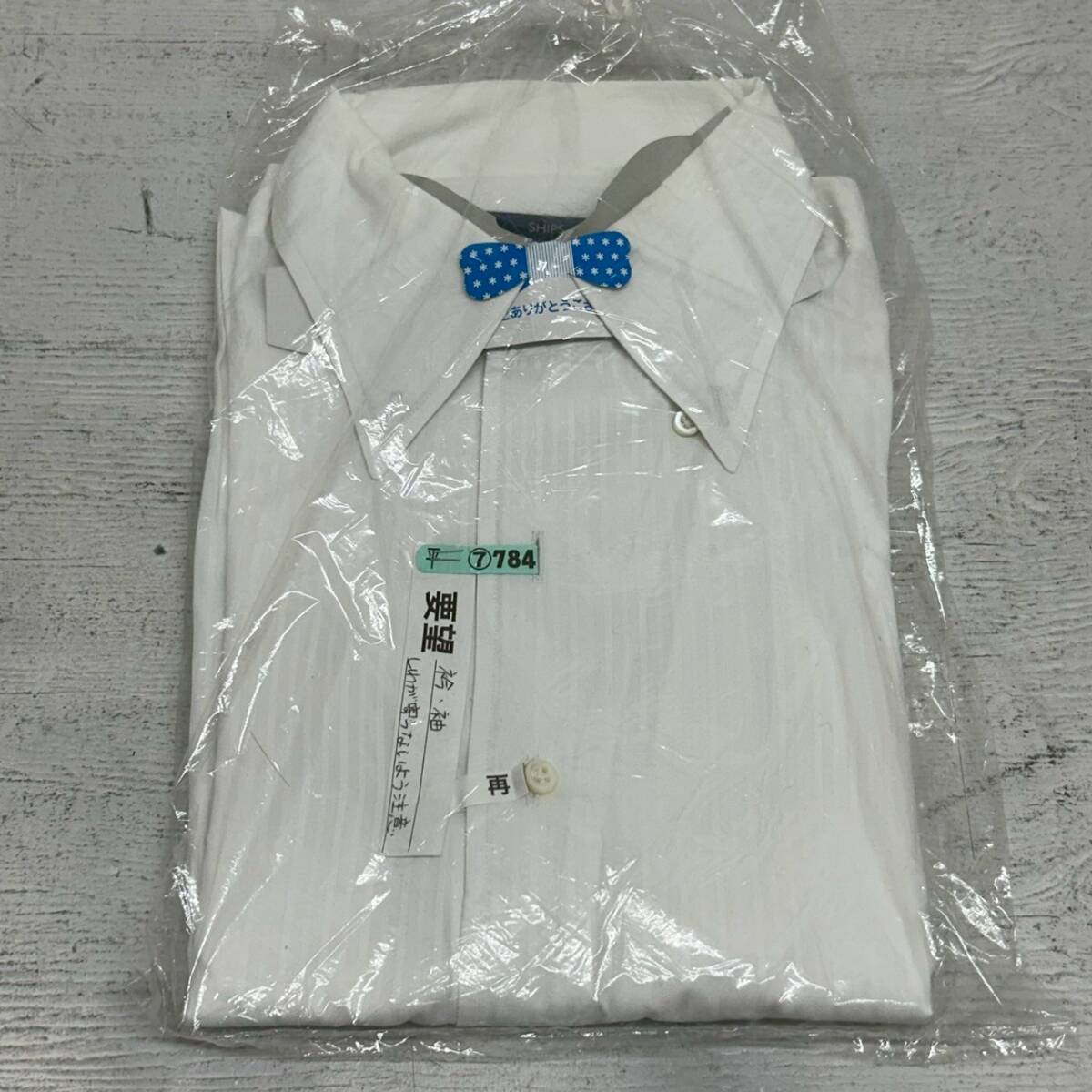 > 【SHIPS シップス】長袖ビジネスシャツ オフィス メンズ 男性 サイズ41 XL ホワイト 白ストライプ クリーニング済み USED