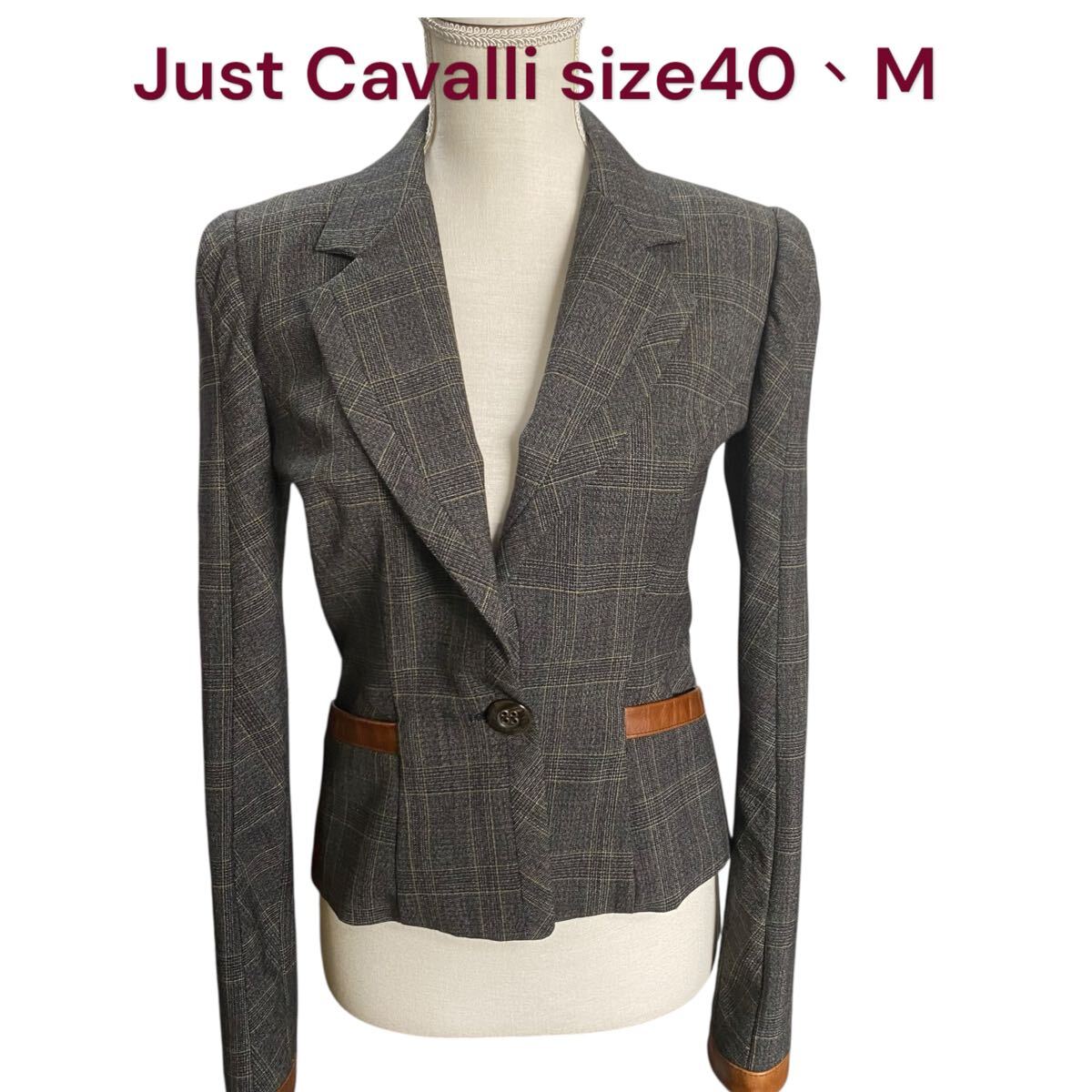 > ジャストカヴァリ レザー使いがお洒落 美形 ジャケット 40、M、9号 テーラードジャケット Just Cavalli