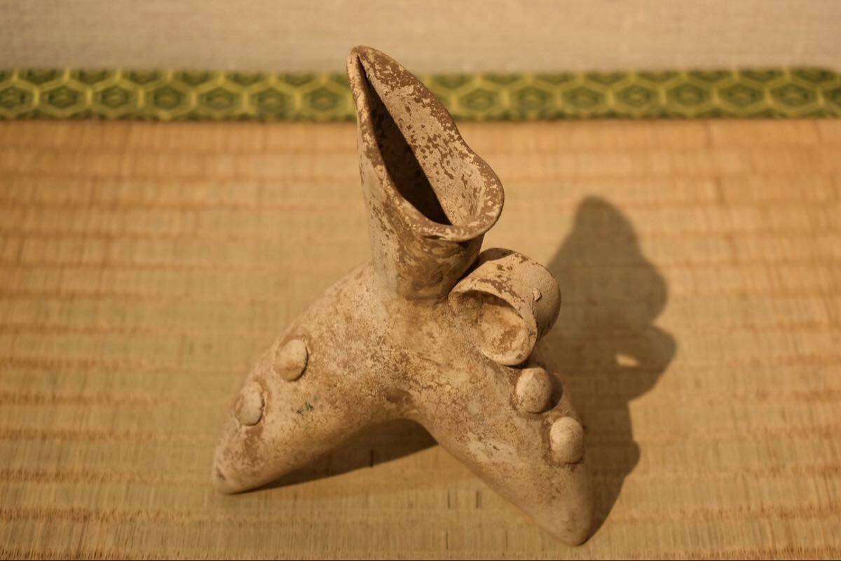 - 【GE】Z620【コレクター所蔵品】時代 加彩土器三足瓶/中国古玩 中国美術 発掘 骨董品 時代品 美術品 古美術品 ow