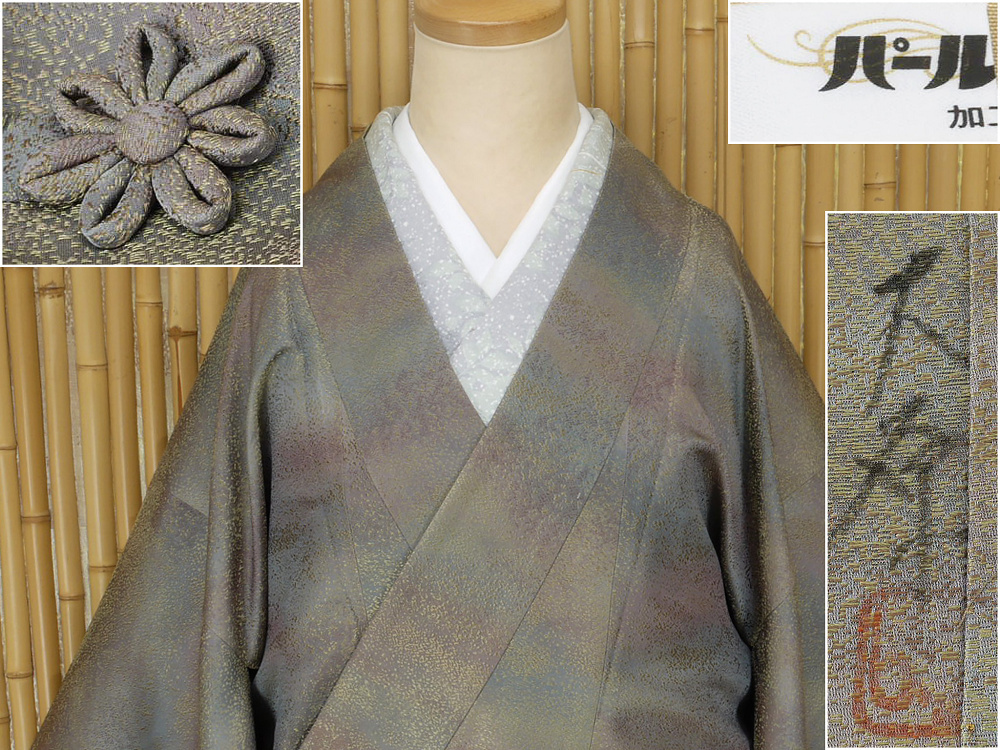 - 【京かんざし】z-89★作家物 落款有【黄金繭 黄金糸」ロング道中着コート 躾糸付未着用★即決送料無料!