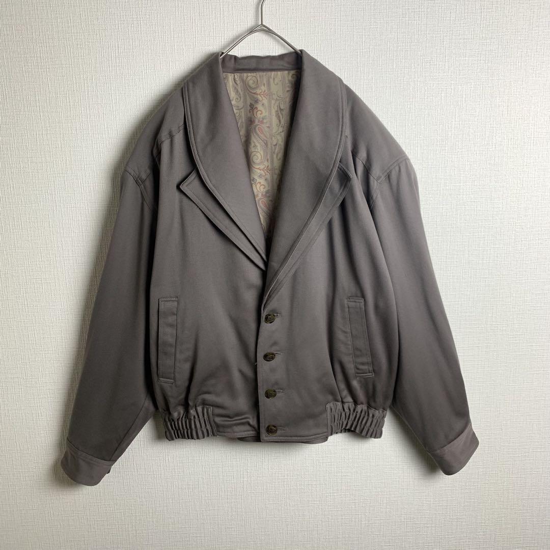 > ブルゾン ジャケット アウター カーキ ショールカラー 裏地ペイズリー柄 ボタン ウール メンズ ユニセックス 古着