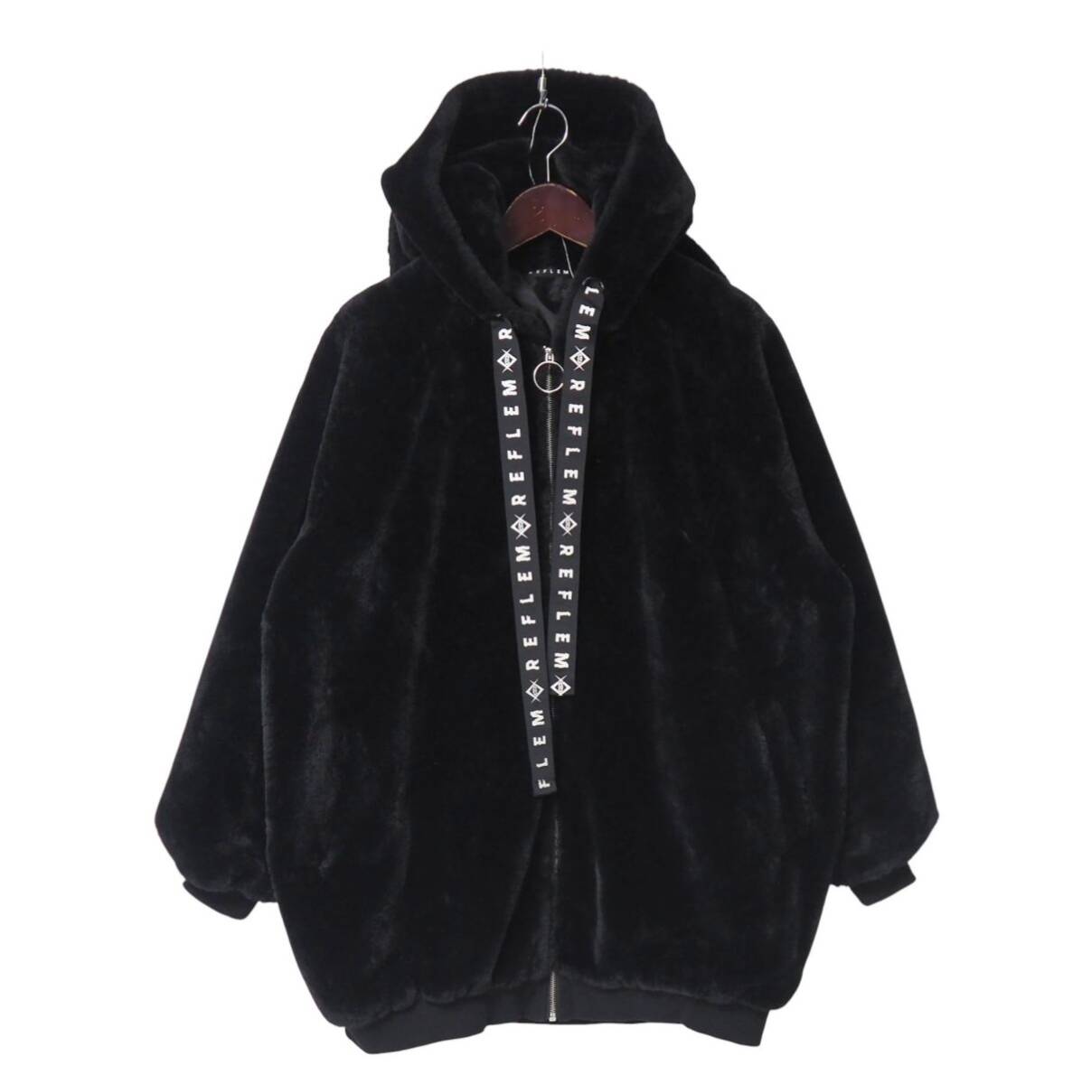 - TJ5404▽REFLEM レフレム うさ耳 オーバーサイズ フェイクファー ジップアップ パーカー フーディー ブルゾン ブラック 4097500201