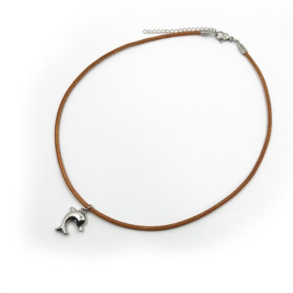- ミニドルフィン 十字架 革紐 レザーチョーカー ステンレスチャーム付き 40cm(35+5cmアジャスター)