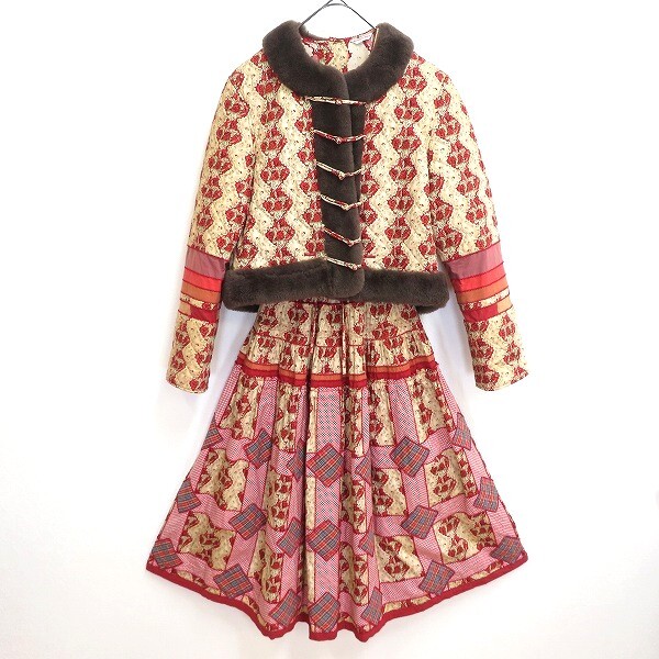 - #wu ワンダフルワールド WONDERFUL WORLD カネコイサオ セットアップ ジャケット ワンピース 薔薇柄 ムートン チャイナ [970707] k01