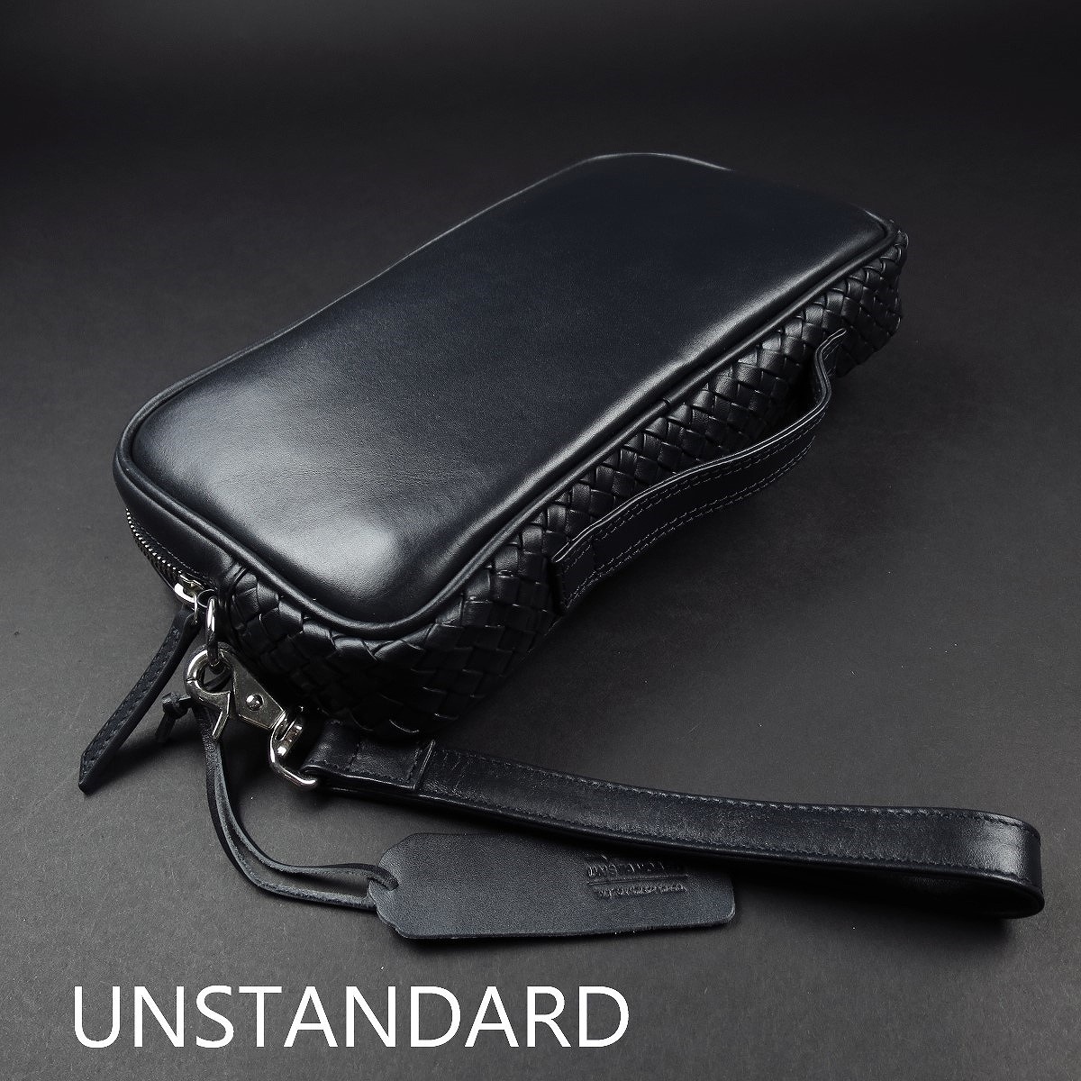 - 新品 ★ UNSTANDARD 【本革】 メッシュ切り替え ON・OFF クラッチバッグ セカンドバッグ 002/紺
