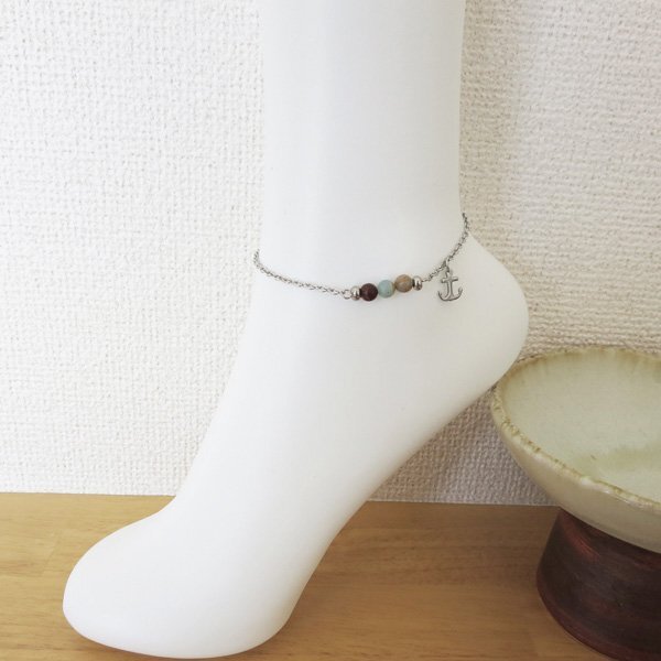 - ステンレスチェーンアンクレット スネークスキン 約6mm 平小豆幅2.4mm 27cm(23+4cmアジャスター)