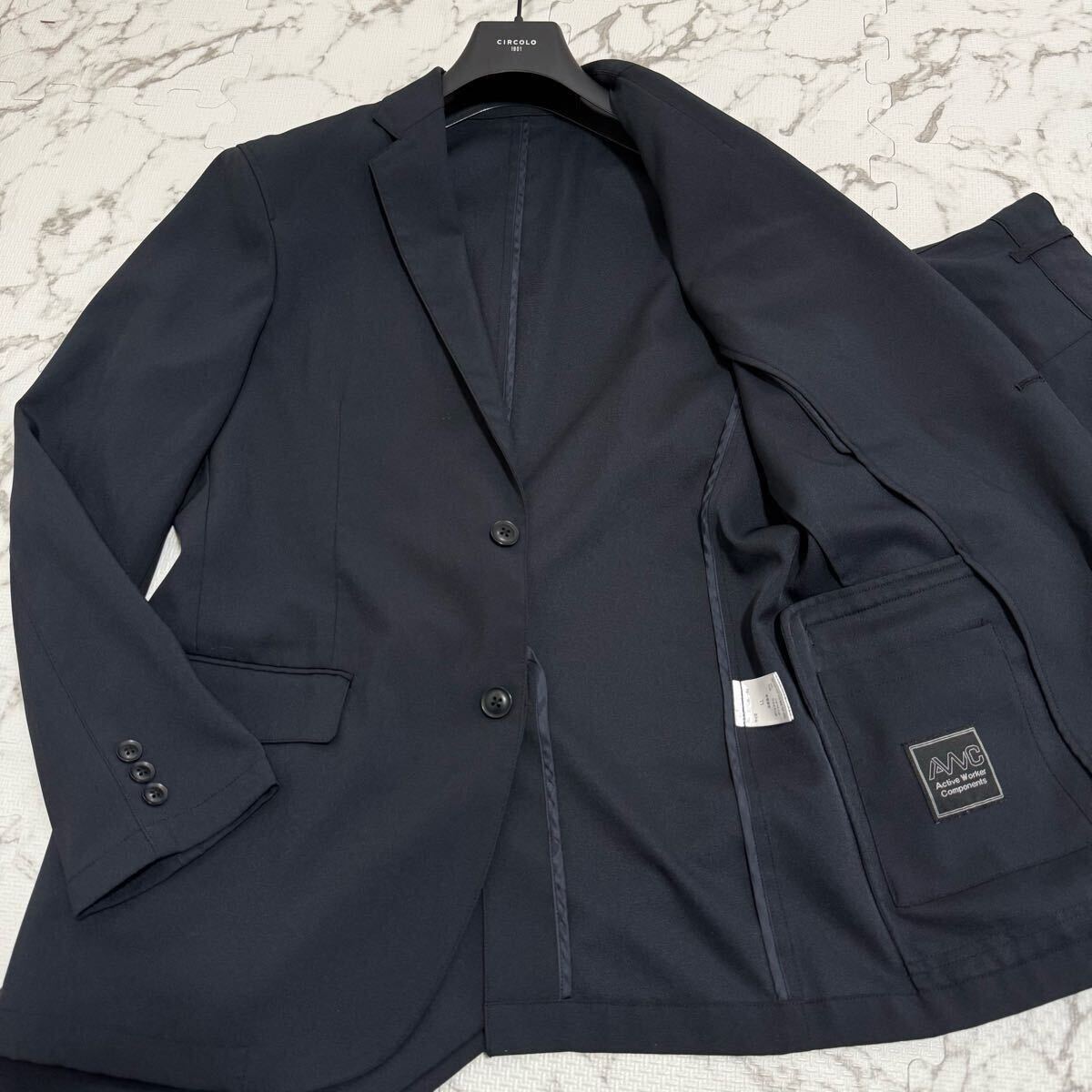 - 極美品/XL/AVVC スーツ セットアップ ジャケット パンツ ネイビー メンズ 上下 ストレッチ LL ビジネス 秋冬 定番 出張 トラベル 洗える