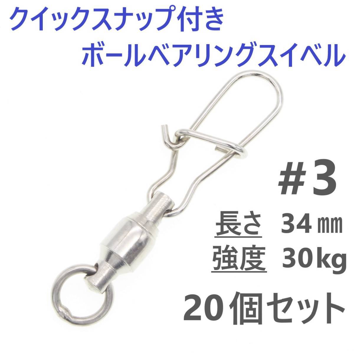 > 【送料150円】クイックスナップ付き ボールベアリング スイベル #3 20個セット 溶接リング付き ローリング サルカン ジギング等に!