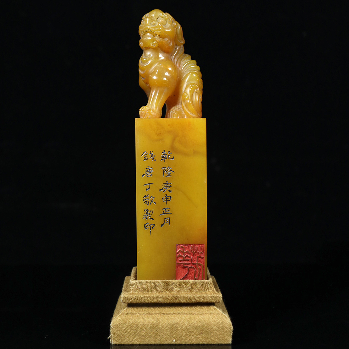 - ▽鴻▽清朝時代 寿山石 田黄石彫 瑞獣鈕印章 丁敬作 箱付 時代物 中国古美術 骨董品