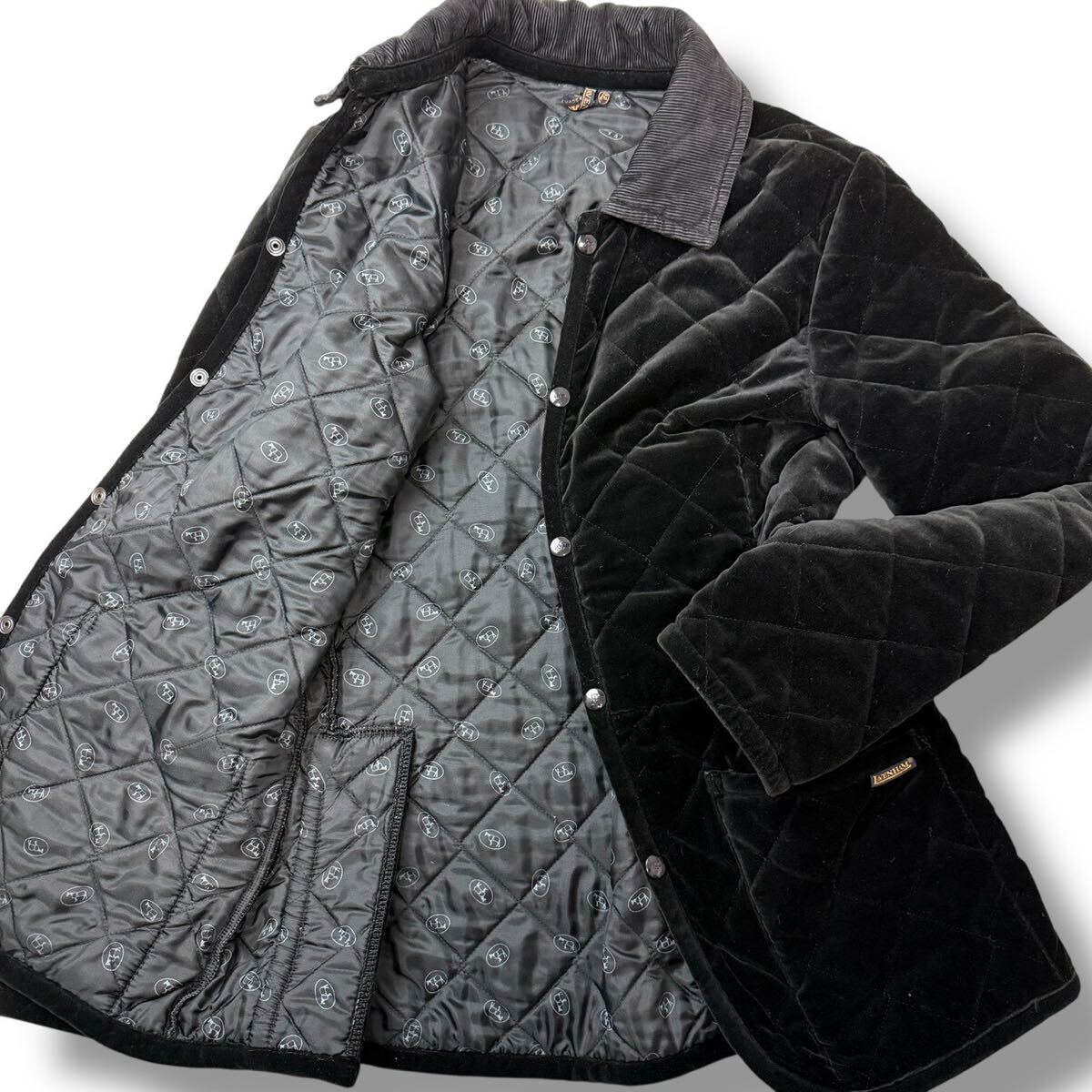 > 1177【極美品】LAVENHAM ラベンハム ベロア ベルベット キルティングジャケット コート ブルゾン 裏地ロゴ総柄 黒 ブラック メンズ 38 光沢