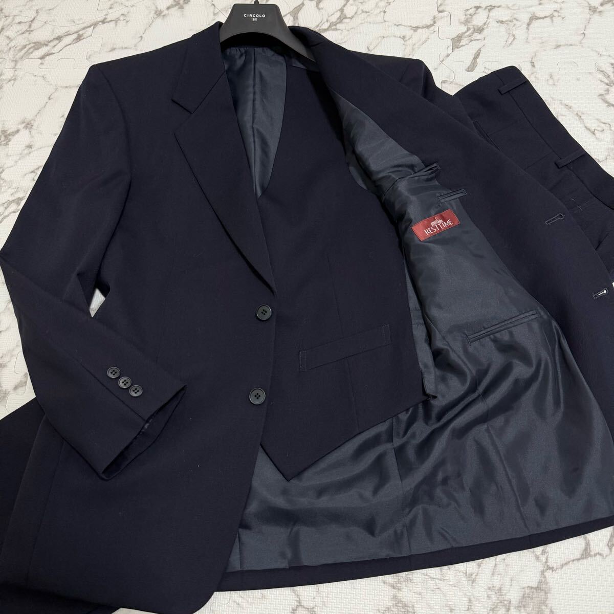 - 【一流の品格】 最高級ウール スリーピース 3ピース REST TIMEスーツ セットアップ ペイズリー チェック ジャケット ベスト 大きい XL位