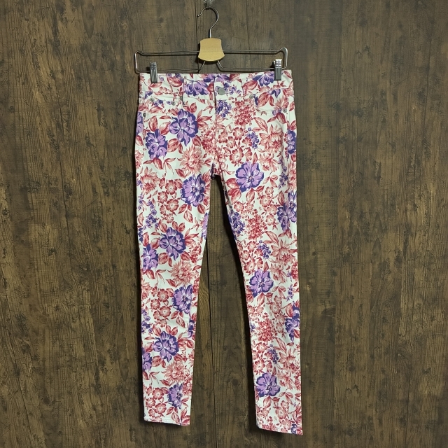 > C48◇AZUL BY MOUSSY | アズールバイマウジー 花柄スキニーパンツ ホワイト×マルチカラー レディース Mサイズ 中古品