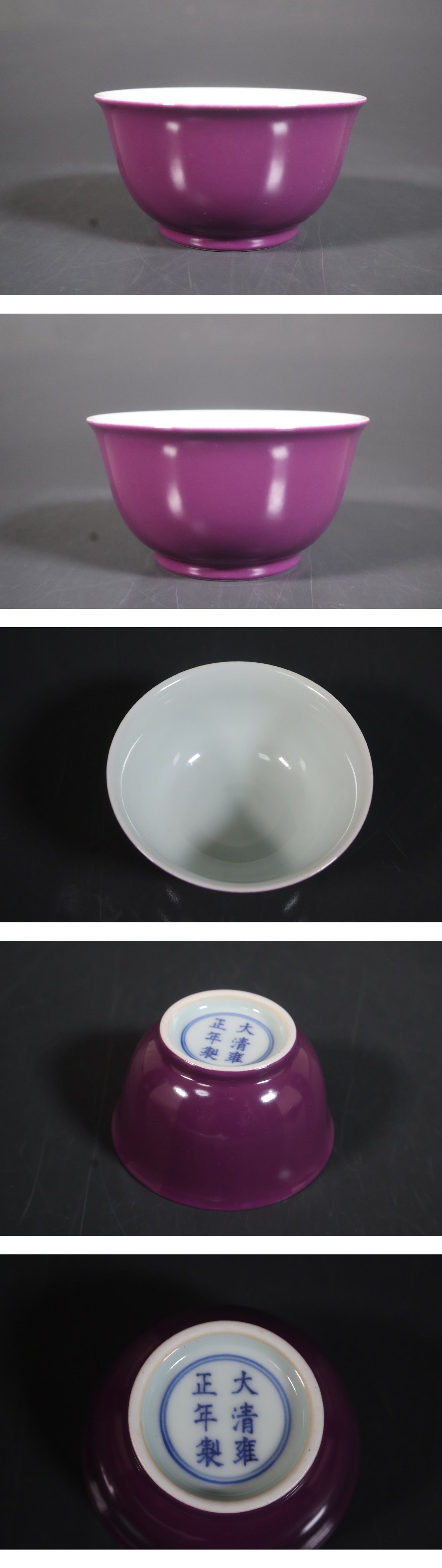 - 【和】(A3574) 時代古作 唐物 清朝 大清雍正年製 紫地猪口 煎茶器 酒器