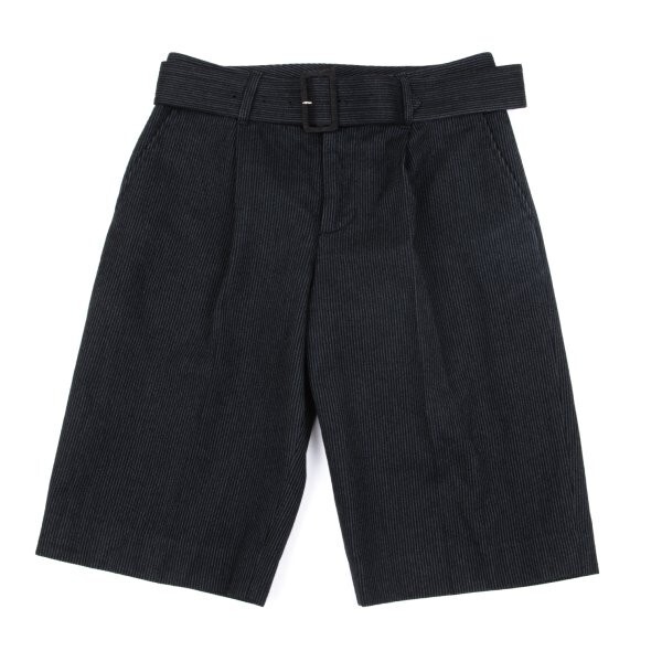 > マークバイマークジェイコブスMARC by MARC JACOBS ウール混ストライプベルト付きショートパンツ チャコール黒2