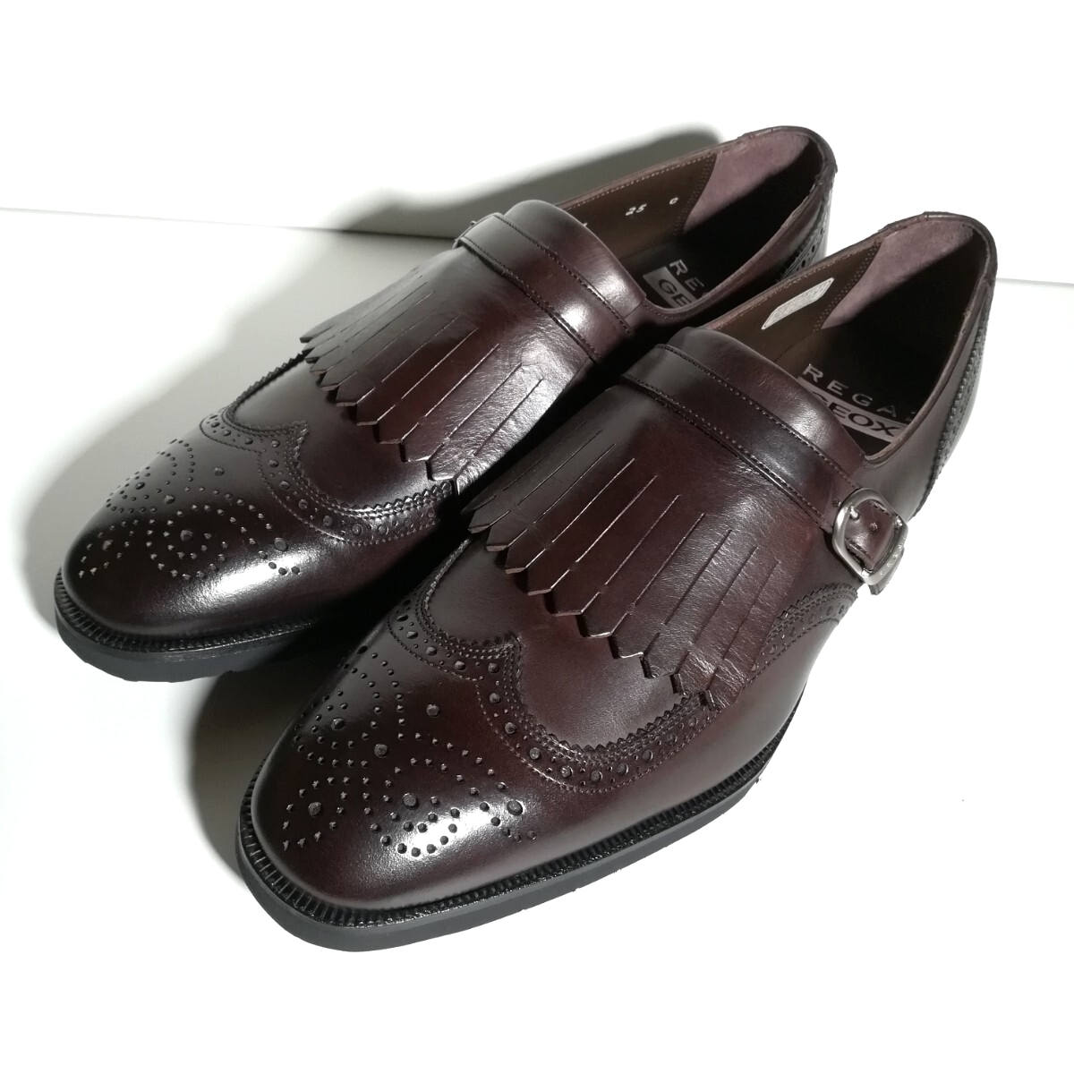 > d0226 【新品同様・試着程度】 日本製 ★リーガル REGAL★ W957 GEOX ウイングチップトゥ キルト レザーシューズ 25 茶 ブラウン 革靴