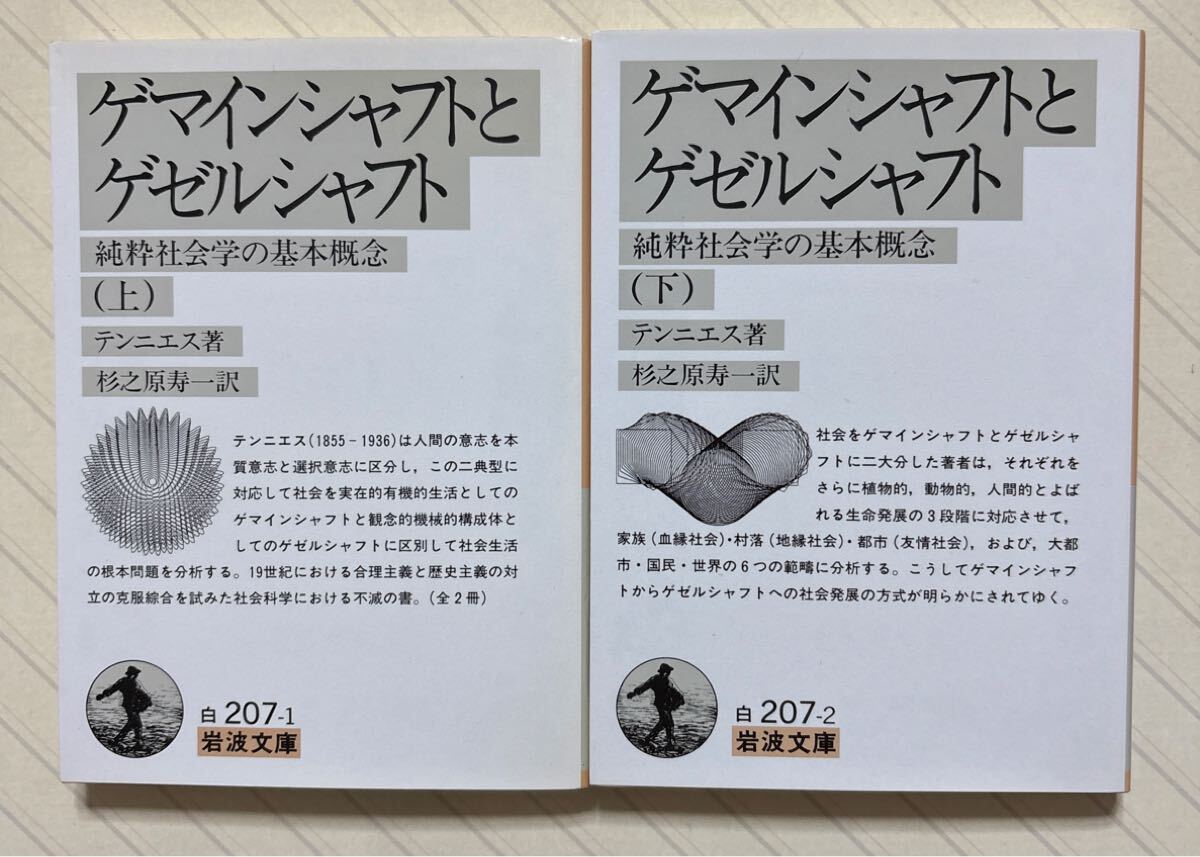 - ゲマインシャフトとゲゼルシャフト(上下) テンニエス/著 杉之原寿一/訳 岩波文庫