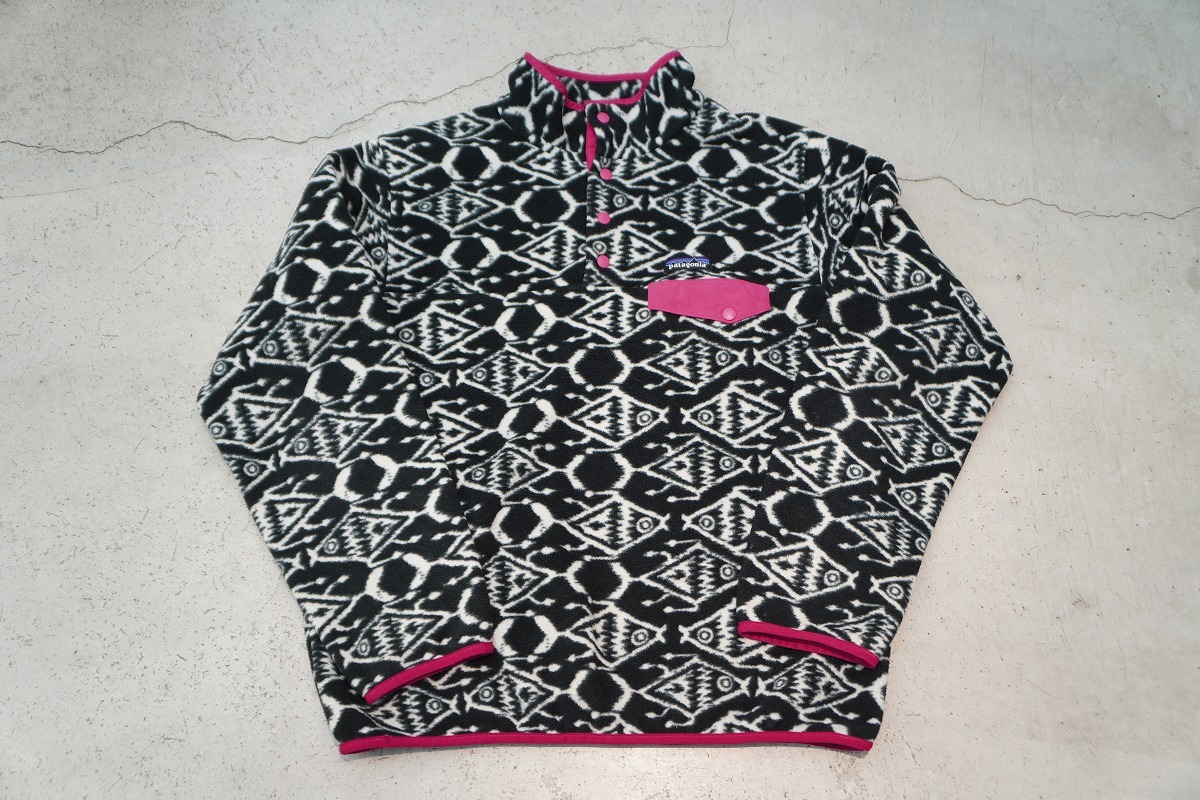 > 美品 希少 patagonia パタゴニア 25455 Synchilla Snap-T シンチラ スナップT プルオーバー フリース ジャケット 総柄黒M 本物914P♪