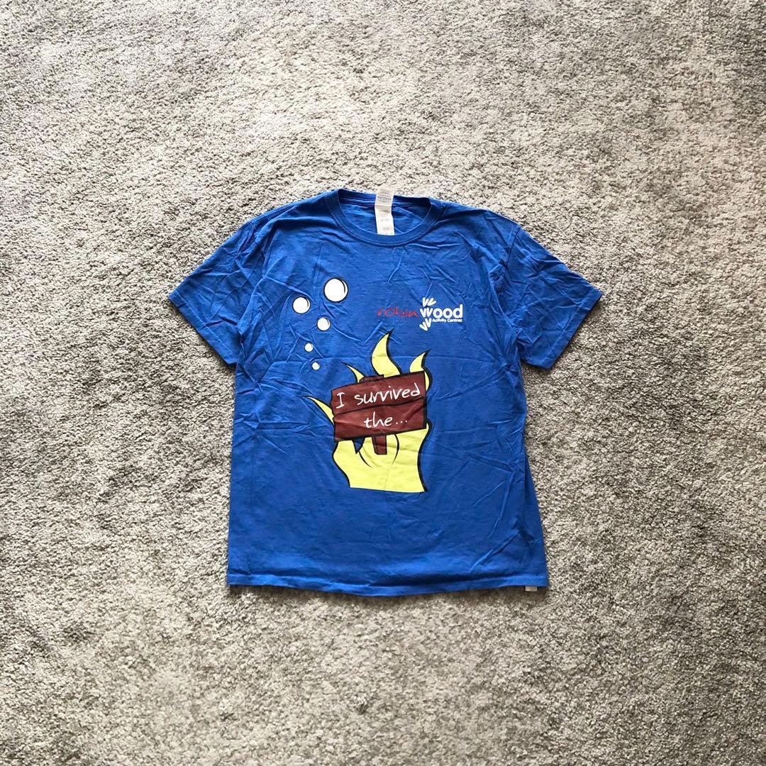 - Sサイズ相当 ギルダン 青色 ブルー 半袖Tシャツ 両面プリント 魚 アニマル