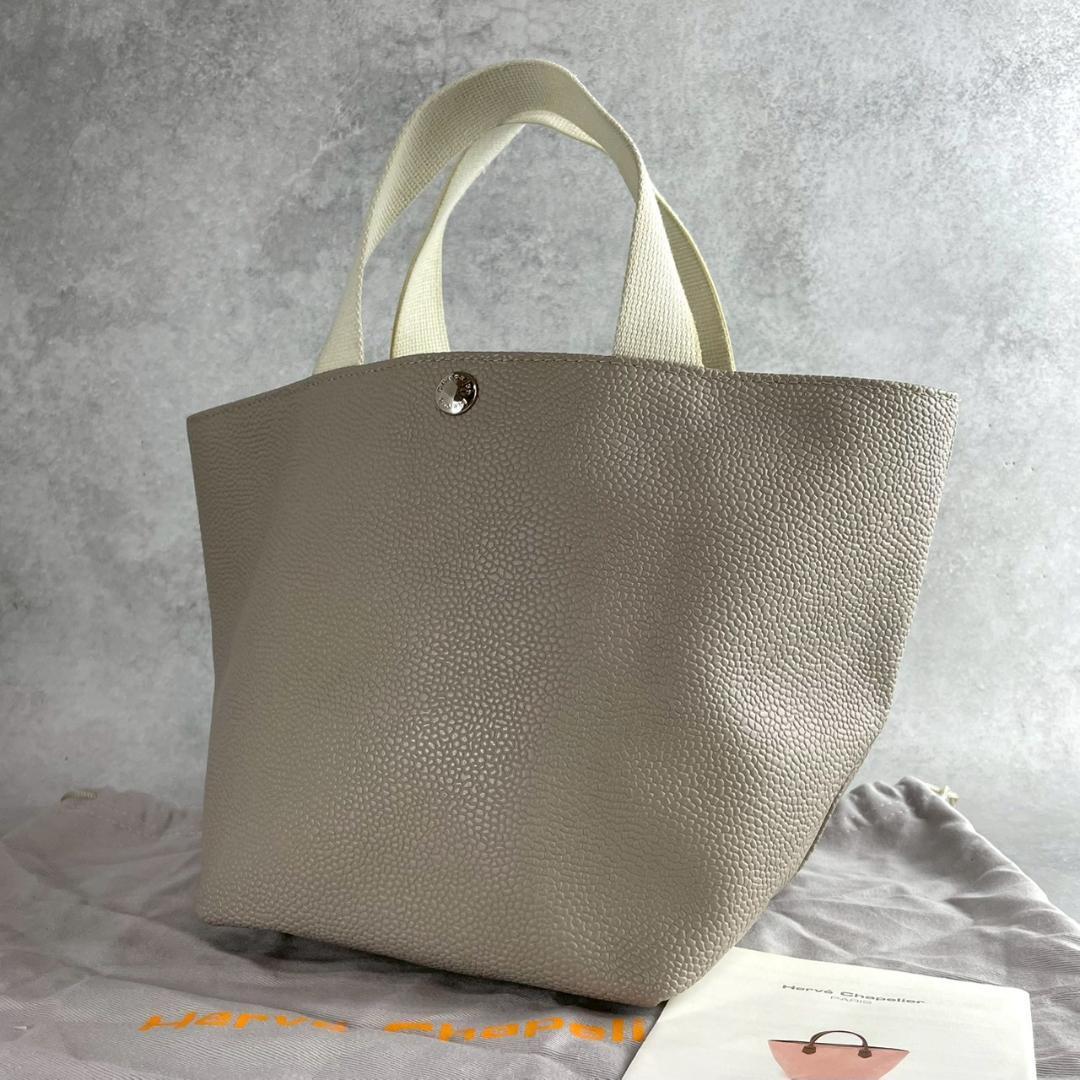 > 【現行デザイン/定価25万】Herve Chapelier エルベシャプリエ 827GG スクエアトートM マスティック×イヴォワール バッグ キャンバスレザー
