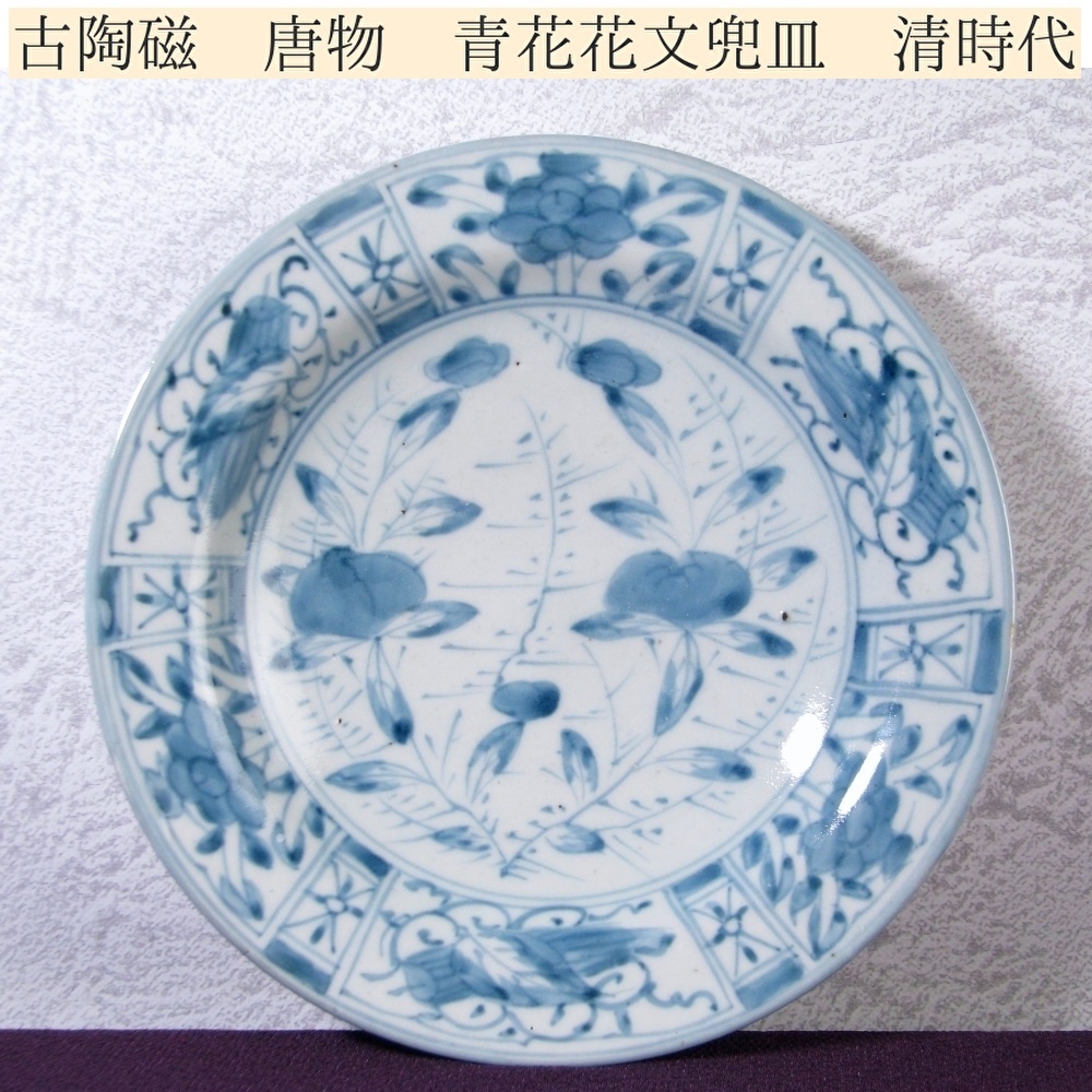 - 古陶磁 唐物 青花花文兜皿 幅:20cm 清時代/25j035