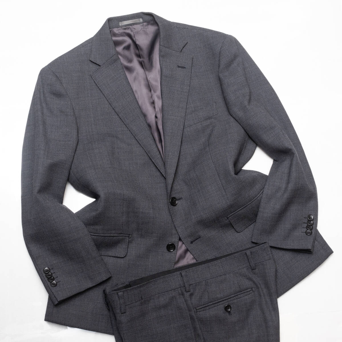 - 【表記AB5/ワイドM-L相当】美品『Mitsumine×San Gallo』セットアップスーツ ウール混 チャコールグレー 秋物 メンズ