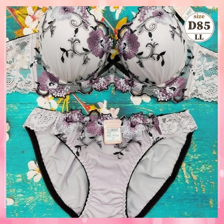> Zd8532◆新品 ブラショーツセット【D85/LL】下着 ランジェリー 脇高 谷間メイク 美胸 クラシカルフラワー 紫
