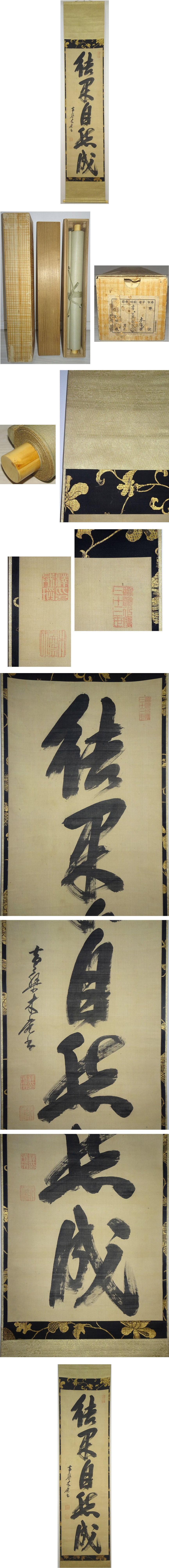 - 【掛け軸】 黄檗宗 木庵 「絹本一行書」 真作 真筆保証 福建省 明末清初 渡来禅僧 宇治黄檗山万福寺第二代住持