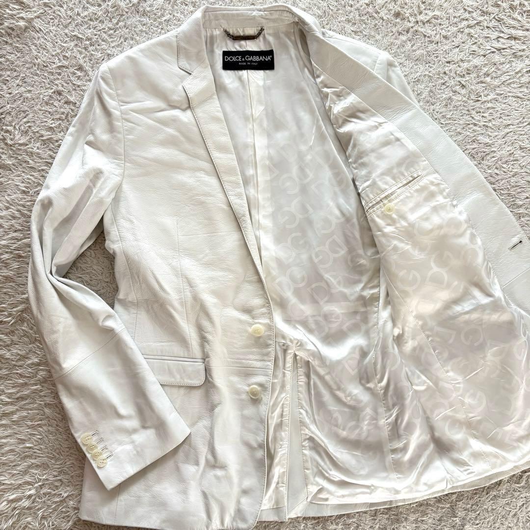 > ドルチェ&ガッバーナ ★羊革★ GOLD テーラードジャケット DOLCE&GABBANA ゴールド 本革 レザー イタリア製 裏地総柄 50 白 ホワイト