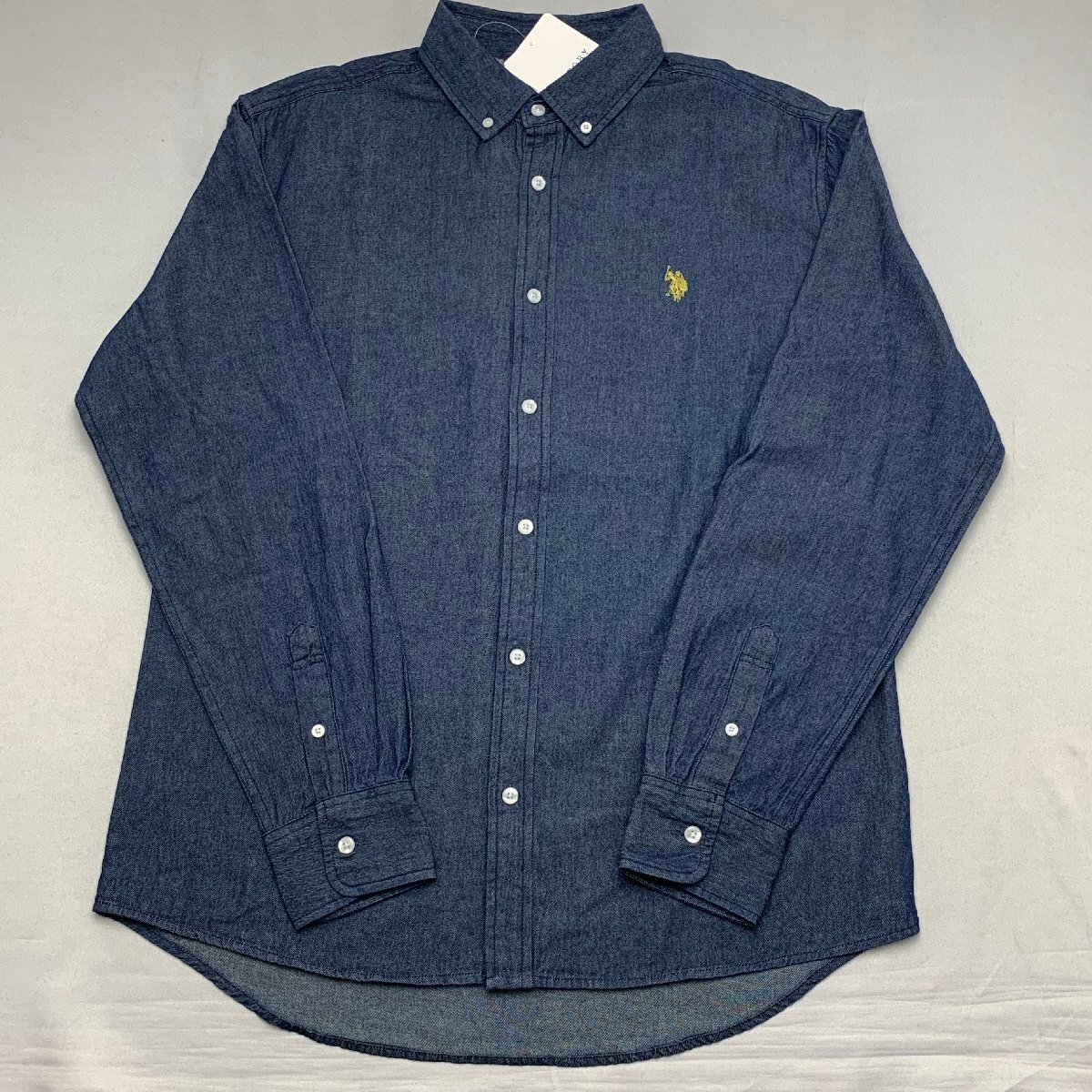 - 【送料無料】【新品】US.POLO.ASSN メンズ長袖コットンシャツ(ボタンダウン仕様) L インディゴ★53700
