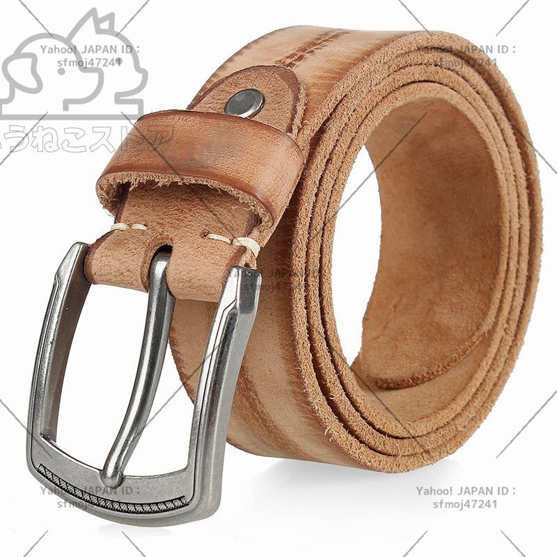 > レザーベルト 新品 本革 牛革 メンズ ベルト 一枚革 ピンバックル 革ベルト ゴルフウェア ポンチ付き 紳士 アメカジ カーキ