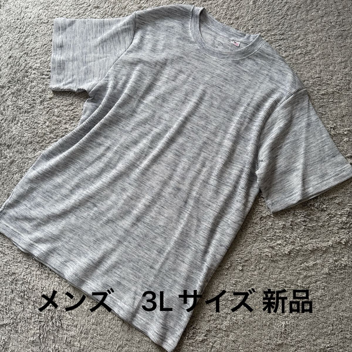 - 大きいサイズ メンズ 襟がよれにくい毛玉になりにくいミックスブルー半袖ワッフルTシャツ3L★ゆうパケット配送可能★新品51