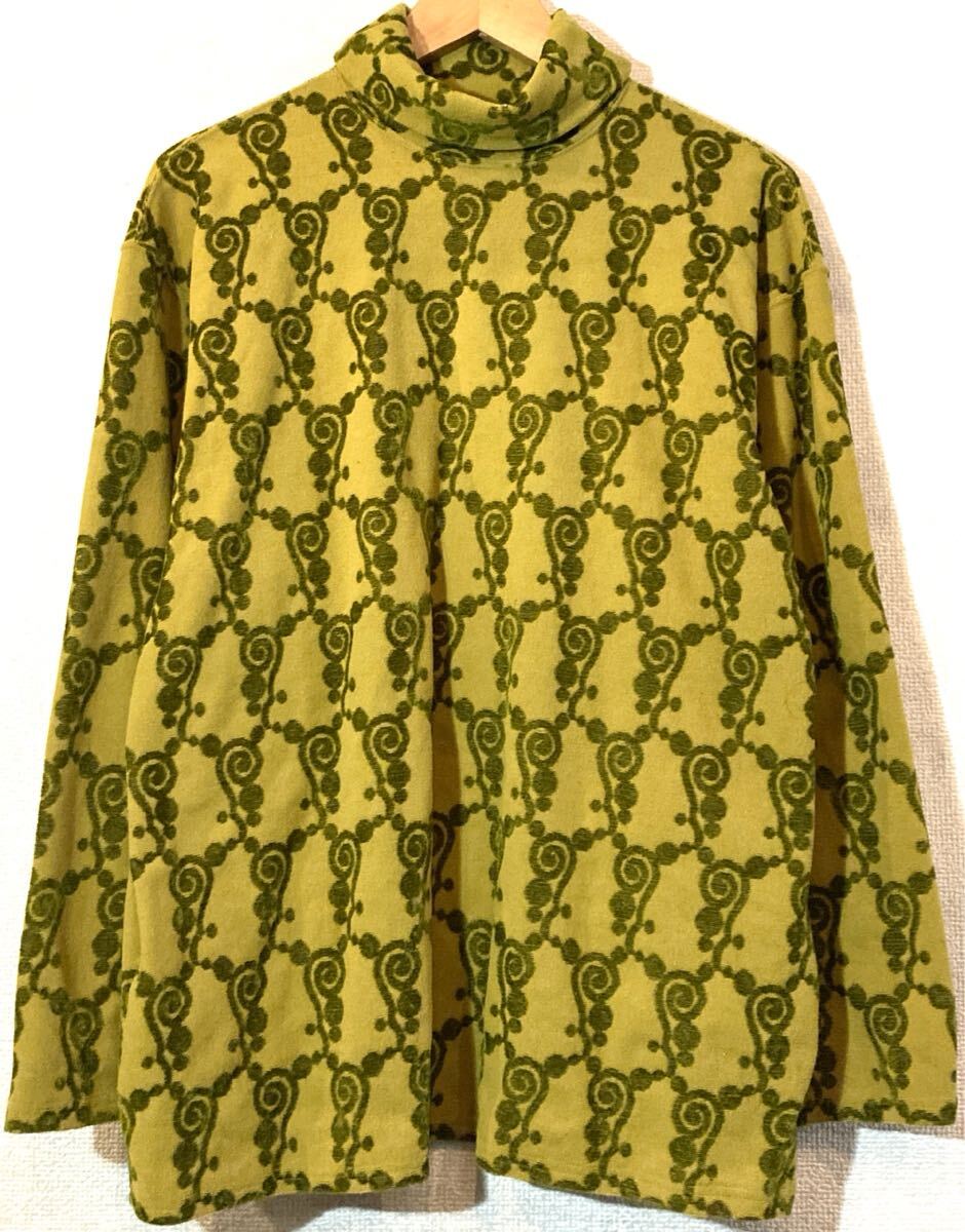 > NICOLE★90'sVINTAGE★ニット★セーター★総柄★幾何学模様★タートルネック★フリース生地★日本製★ニコル★ビンテージ★イエロー★黄