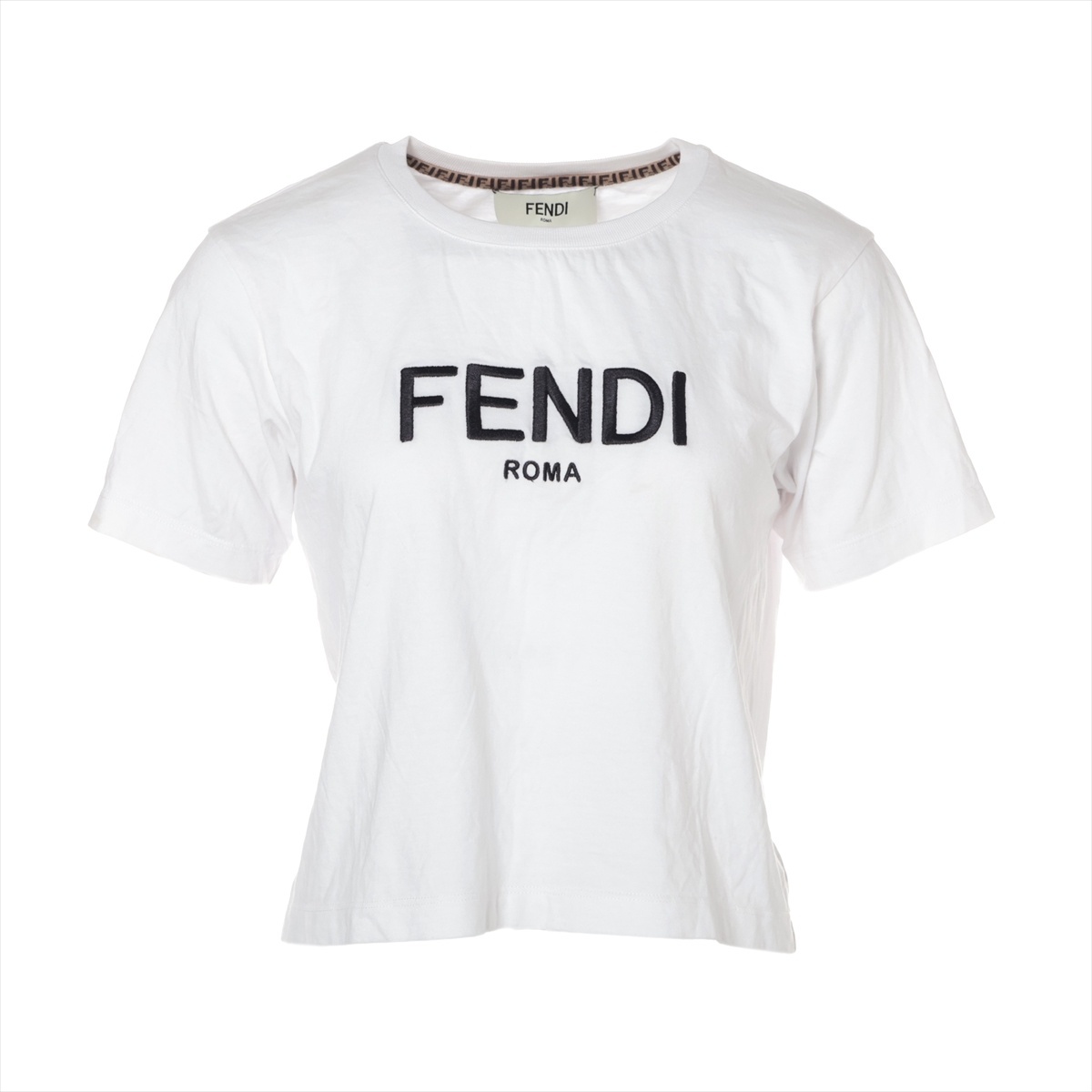 - フェンディ FENDI 半袖Tシャツ コットン 刺繍ロゴ XS ちびT ホワイト