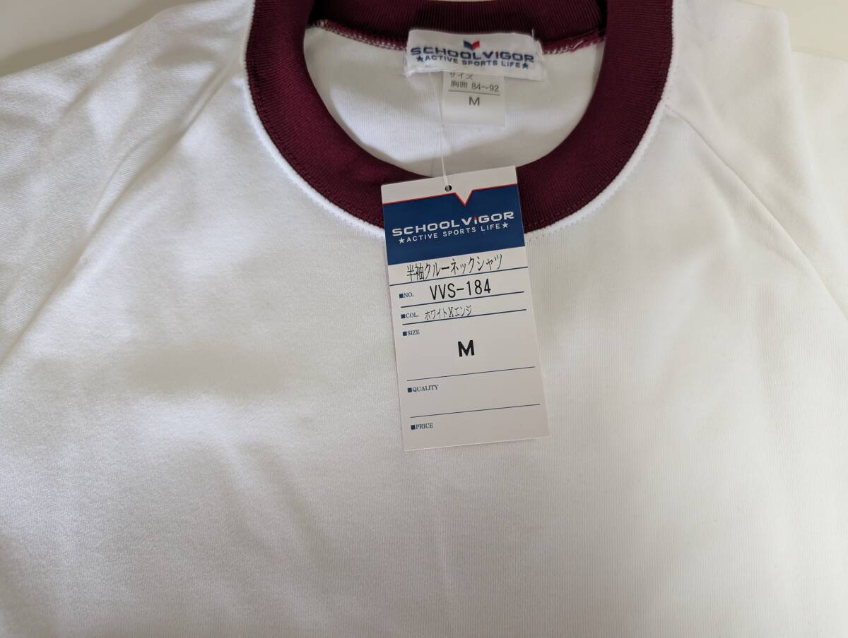 - VIGOR 半袖体操服 スクールクールネックシャツ Mサイズ 白×エンジ 新品未使用 難あり 小さいしみあり