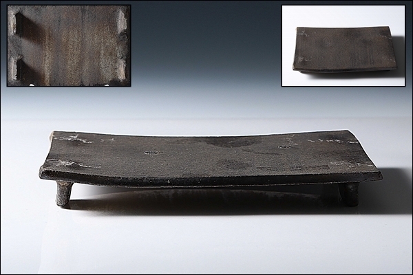 - SP1650 石原稔久 父 石原祥嗣 黒刷毛目 足付皿 板皿 角皿 工房 一石 検) ほぼ日 百草 ももぐさ