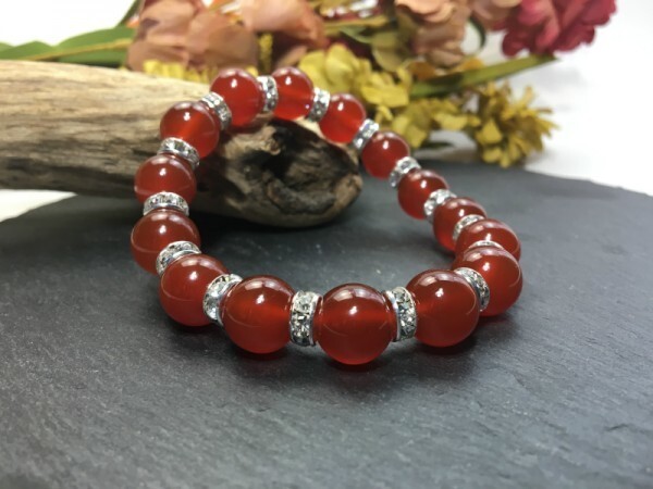 - パワーストーン ブレスレット 赤メノウ 12mm 天然石ブレス シルバー 開運 浄化 数珠ブレス メンズ 男性