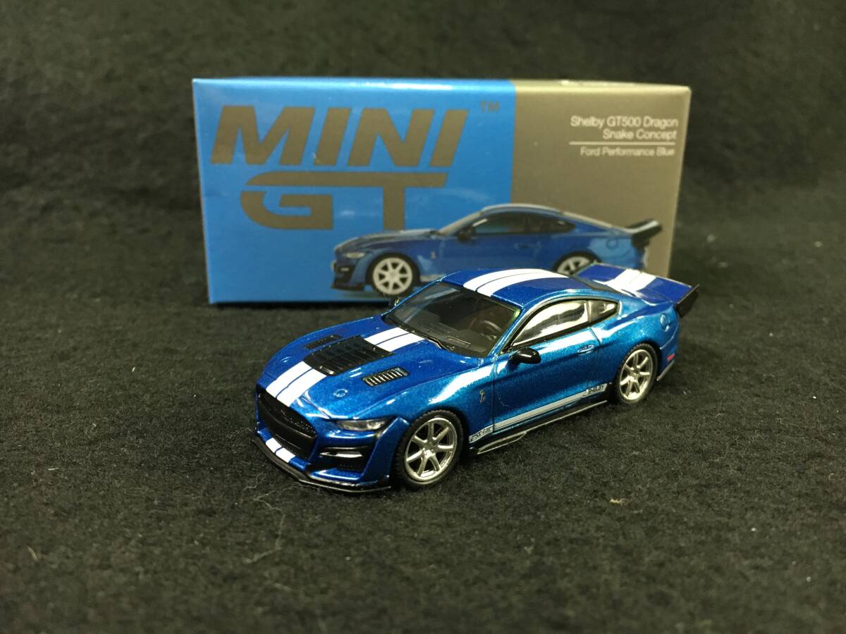 > ■撮影のため一度開封■TSM ミニGT 1/64 シェルビー GT500 ドラゴンスネーク コンセプト フォードパフォーマンスブルー 左ハンドル