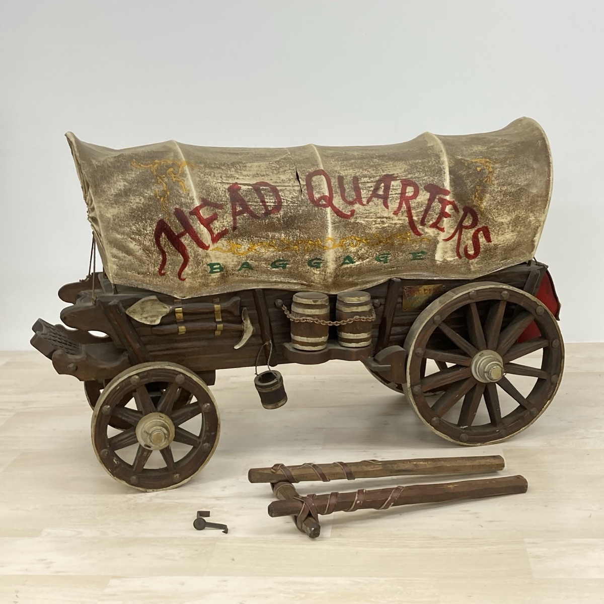 - 大型 木製ミニチュア 幌馬車 カバードワゴン アンティーク ウエスタン 置物 インテリア 店内装飾[I0150]
