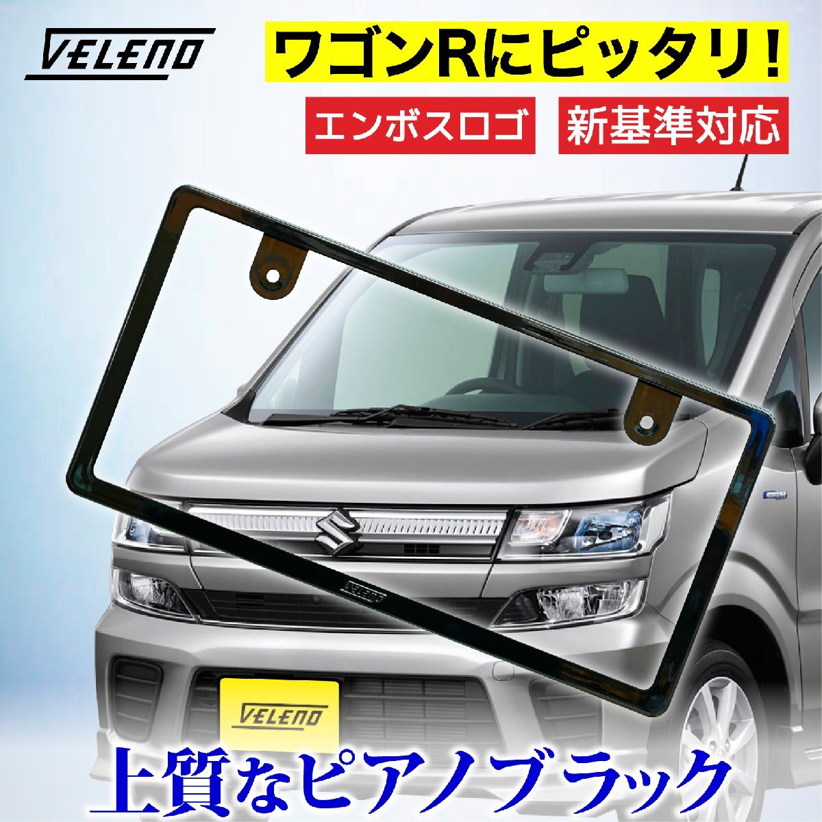 - 新基準対応 ワゴンR 専用 ナンバーフレーム VELENO ピアノブラック エンボス ドレスアップ フロント リア 普通車 軽自動車 1枚 e315