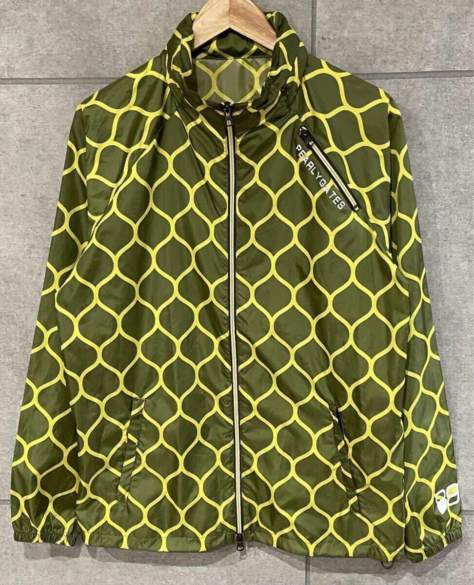- 希少デザイン! PEARLY GATES パーリーゲイツ ナイロンジャケット ロゴプリント 総柄 カーキ系 4サイズ ウェア レターパック可 ◯ 新規×