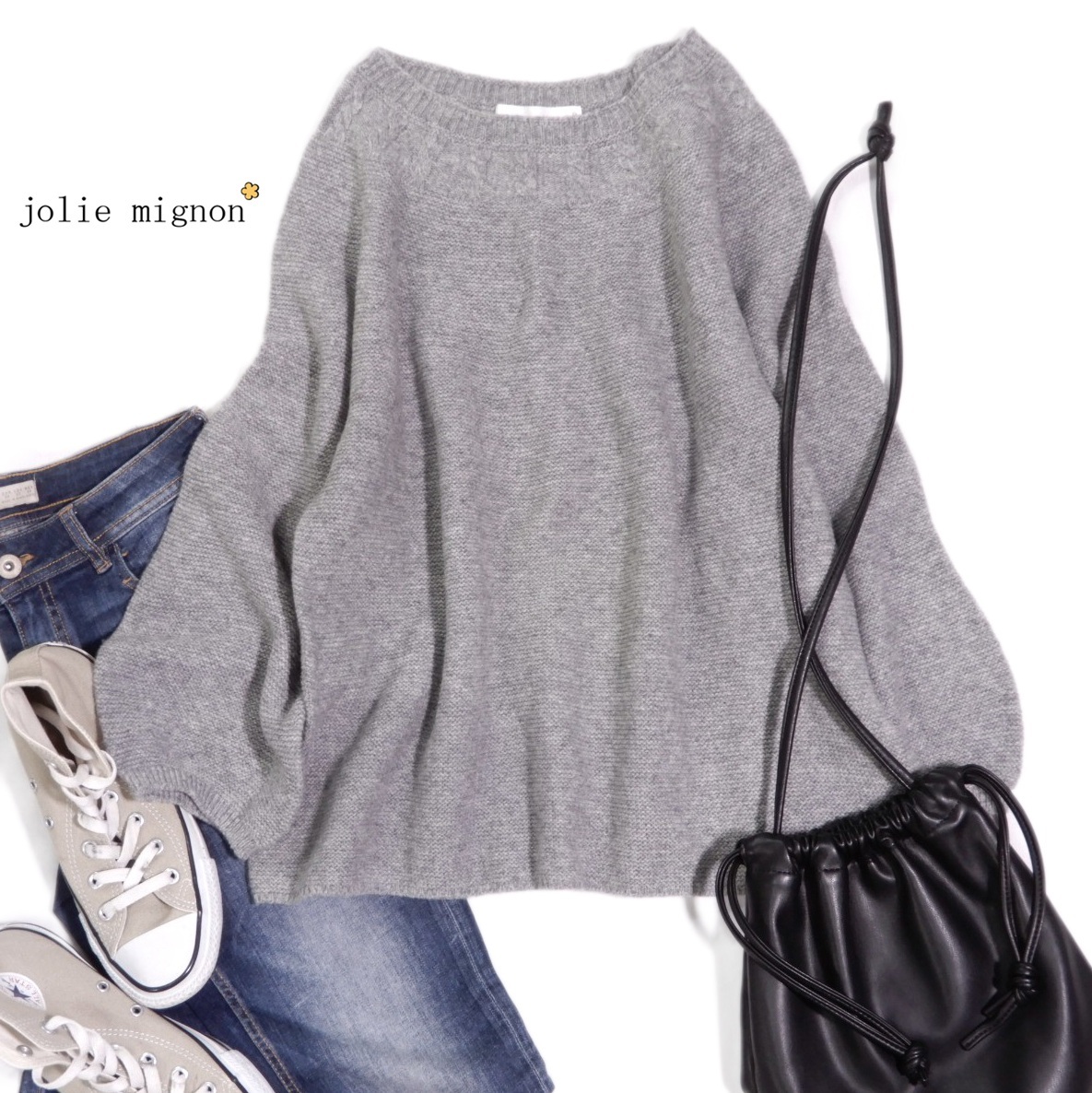 - アンドーニット ジョーリーミニョン Jolie mignon 大人可愛い☆ホールガーメント ケーブル ニット プルオーバー L