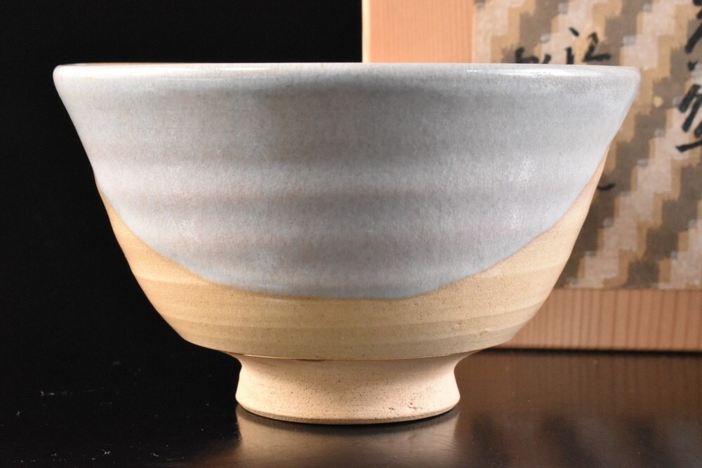 > 【雲】某有名コレクター買取品 萩焼 白釉 抹茶碗 在銘 共箱 古美術品(茶道具) F8064