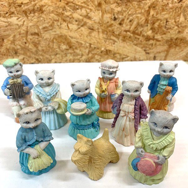 - 送料無料◆★J・C ヴィンテージ★1991 ミニチュア キャット 猫 犬 置物 9個セット インテリア 小物 アンティーク コレクション 中古品