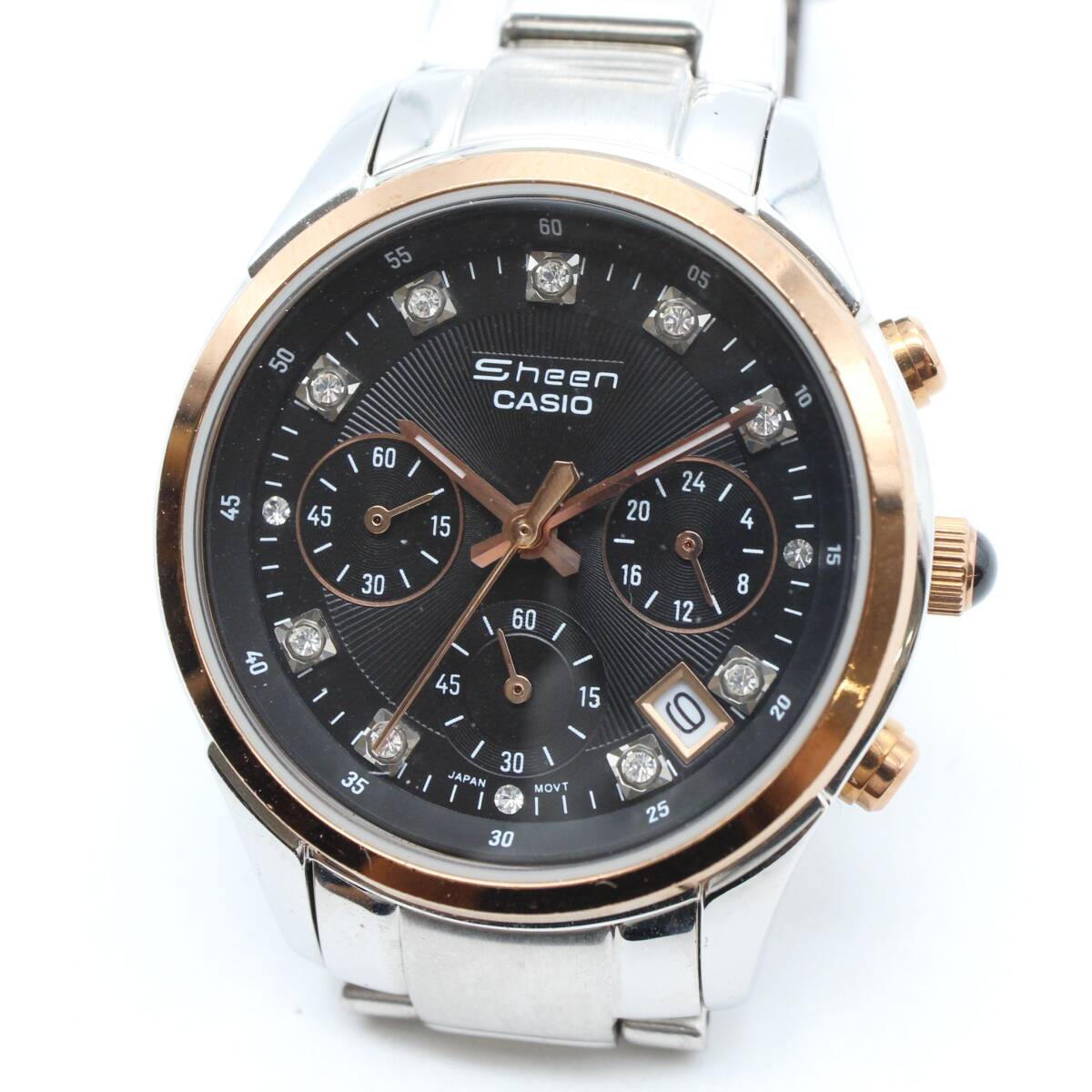 - 電池交換済み 【CASIO カシオ】 Sheen シーン SHN-5003 クロノグラフ デイト クォーツ/QZ レディース 腕時計 ラインストーン文字盤