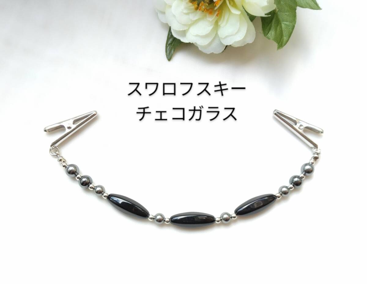 - シックなストールクリップ クリップ羽織紐 羽織り留め スワロフスキー チェコガラス