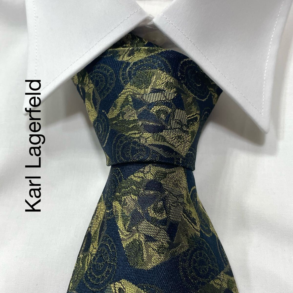 - Karl Lagerfeld カールラガーフェルド パターン柄 ジャガード シルク ネクタイ イタリア製 ブルーグリーン カーキ TG3007