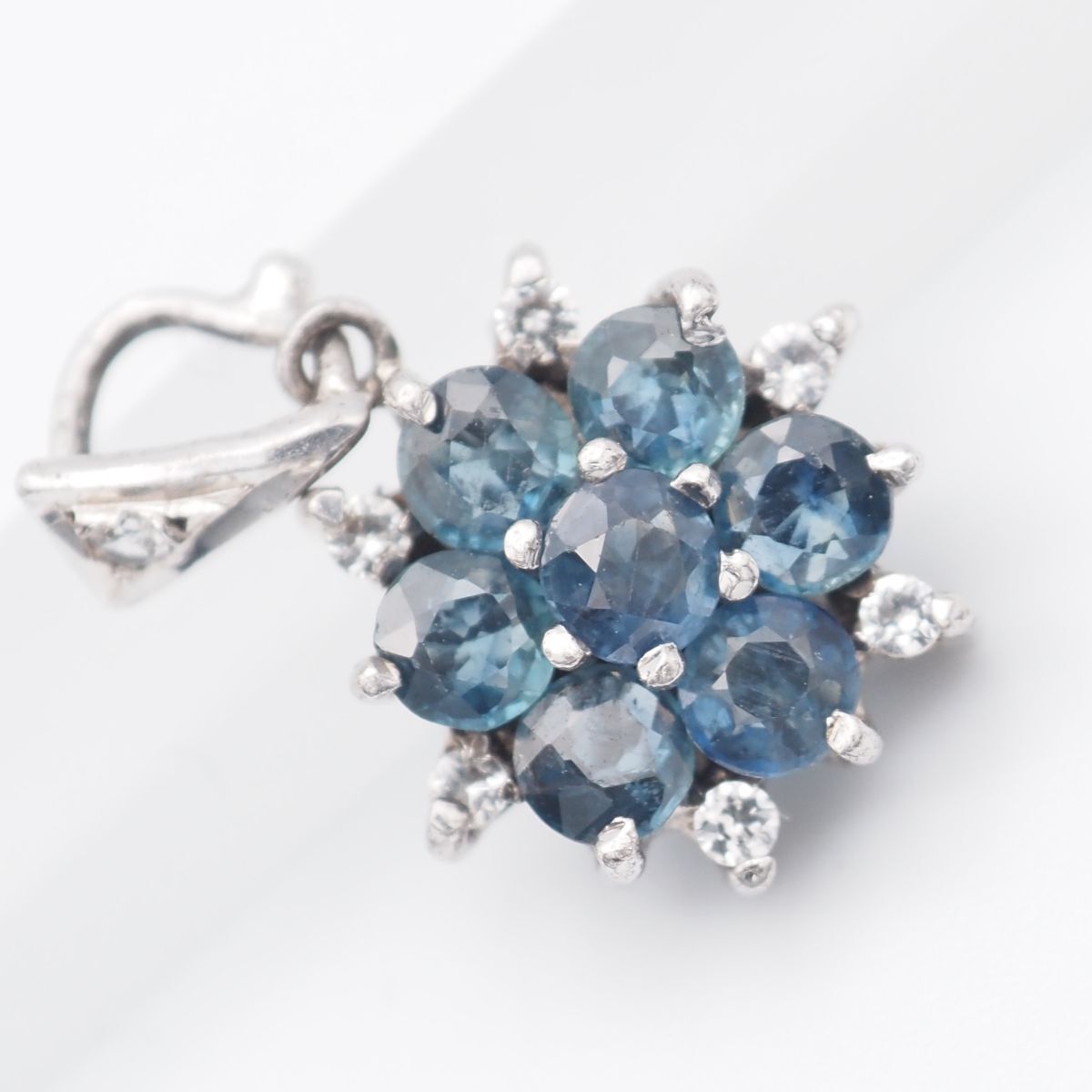 - G762 サファイア? ブルースピネル? ダイヤモンド風 925刻印 ペンダント トップ デザイン シルバー チャーム ヘッド