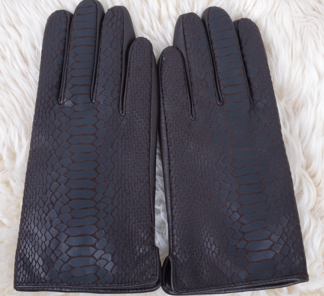 - スマホ対応★高級クロコ鰐型押ラムレザーが贅沢な手袋 ブラウン女性用グローブ革手袋