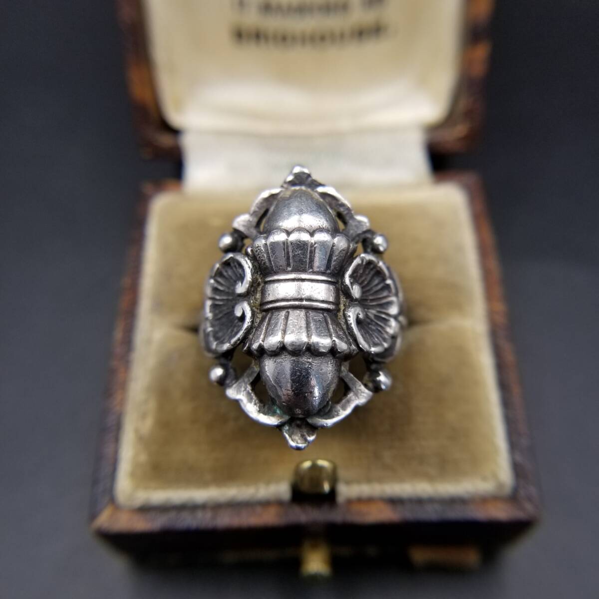 > クラシカル どんぐりのような植物 925 シルバー ヴィンテージ リング 銀 指輪 立体彫刻 大ぶり 存在感 精巧な細工 Y25-B